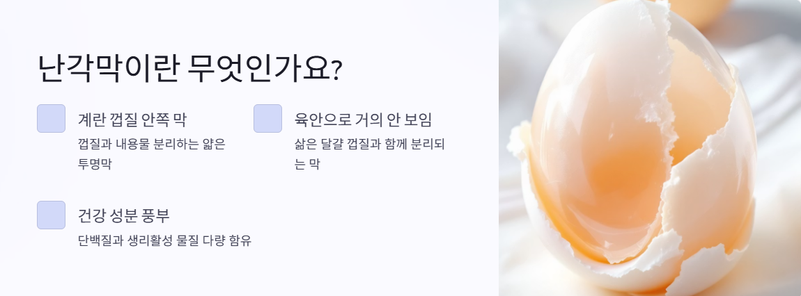 계란 껍질 안에 숨은 보물, ‘난각막’. 단순한 막이 아닌 건강 기능소의 집합체라는 사실, 알고 계셨나요?