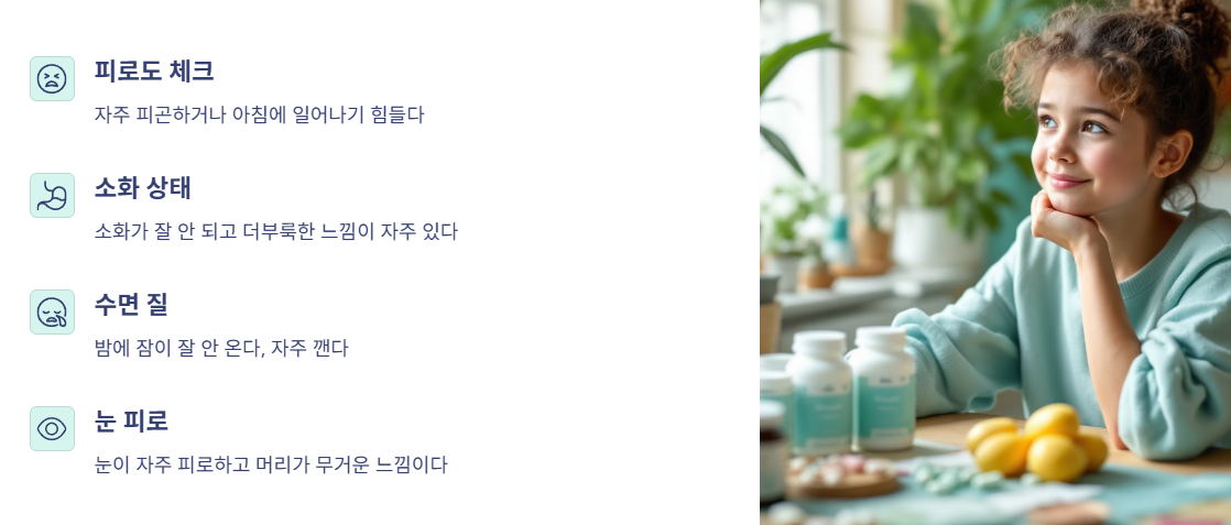 건강식품도 사람마다 궁합이 있어요. 무조건 좋은 거, 비싼 거보다는 ‘내 몸 상태’를 먼저 체크하는 게 중요해요. 아래 체크리스트로 간단히 점검해보세요.